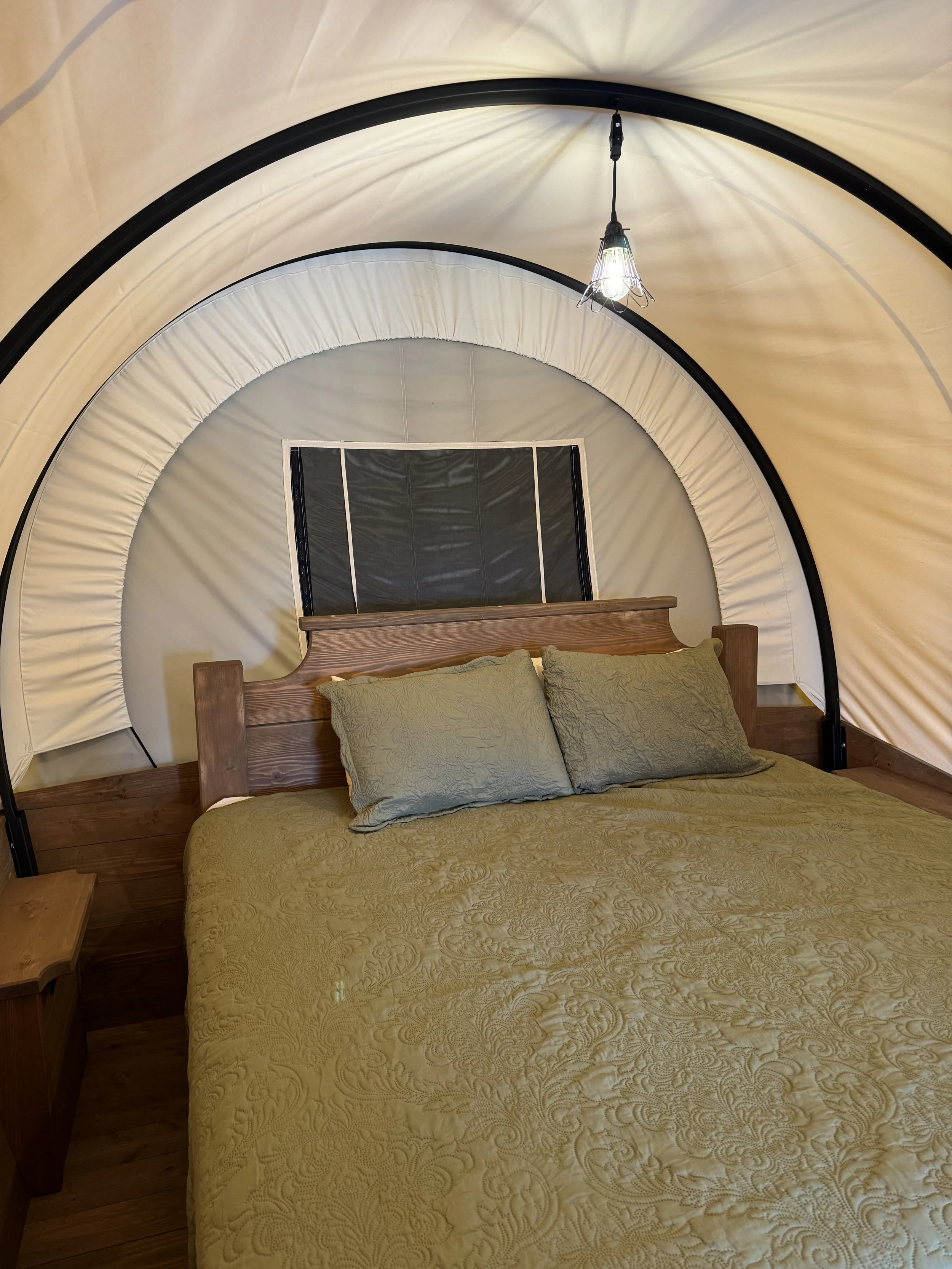 Brand new Covered Wagons for your stay at Turner Falls Park available now.
